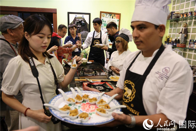 | 7月19日,參加美食活動(dòng)的多國(guó)代表品嘗泰式傳統(tǒng)美食。人民網(wǎng)記者 張矜若攝 |