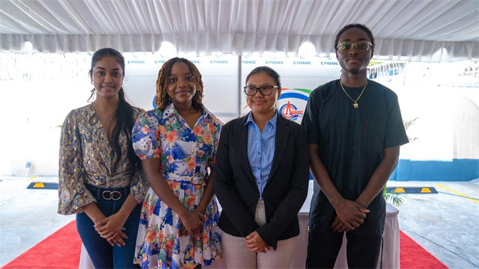 四名獲得中海油獎學(xué)金的學(xué)生合影。中海油圭亞那有限公司供圖