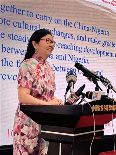 中國駐拉各斯總領(lǐng)館總領(lǐng)事嚴宇清致辭。駐拉各斯總領(lǐng)館供圖