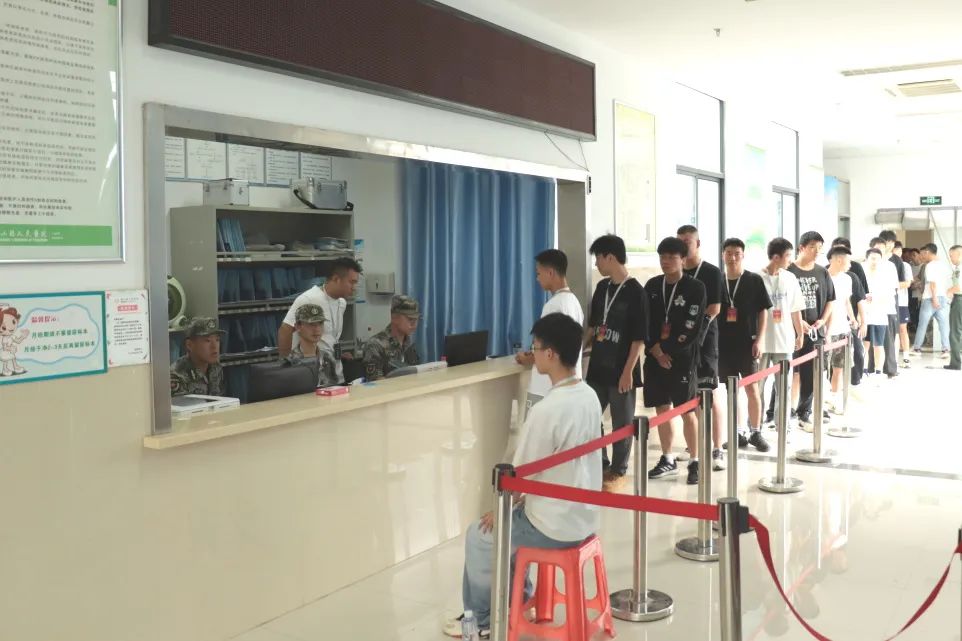 體檢現(xiàn)場,應征青年整齊列隊,有序進行心理測試、外科、五官科、眼科、內科等項目檢查。工作人員和醫(yī)務人員以熱情的服務、嚴謹?shù)墓ぷ鲬B(tài)度為應征青年進行體檢,并及時做好各項檢查結果登記,確保為部隊輸送身體和心理素質過硬的合格青年新兵。