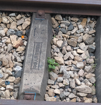 鐵軌枕木上印有“中華人民共和國制”字樣。圖為本報(bào)記者黃培昭攝