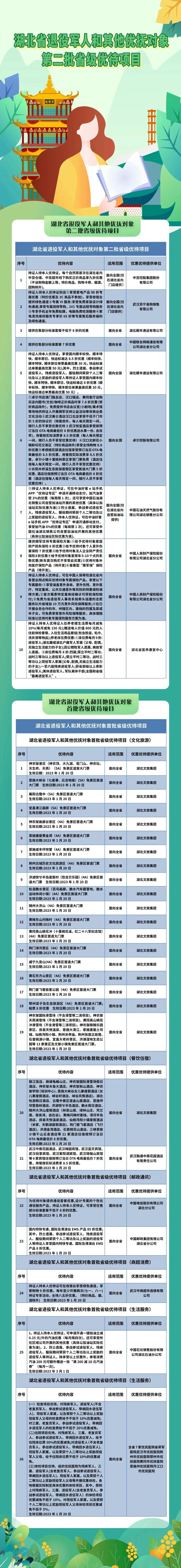 荊楚網(wǎng)(湖北日報網(wǎng))訊(記者 黃騰)近日,湖北省退役軍人事務(wù)廳發(fā)布退役軍人和其他優(yōu)撫對象第二批省級優(yōu)待項目,優(yōu)待項目涵蓋醫(yī)療、保險、養(yǎng)老、旅游、餐飲、購物等方面共29項。