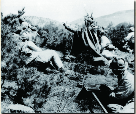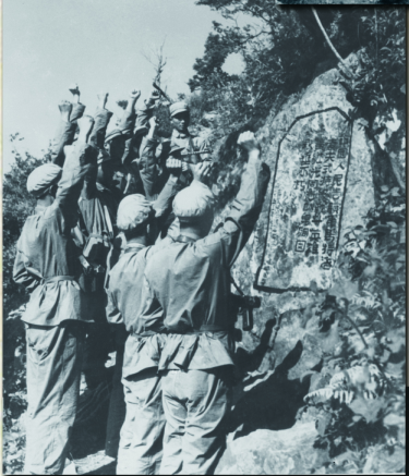 上甘嶺戰(zhàn)役中,通訊兵黃繼光主動(dòng)請(qǐng)纓炸掉敵人暗堡,用胸膛堵住了敵人瘋狂的火舌,用生命為部隊(duì)開辟了前進(jìn)的道路。他是第二位特級(jí)戰(zhàn)斗英雄。圖為志愿軍戰(zhàn)士在黃繼光烈士紀(jì)念碑前莊嚴(yán)宣誓。