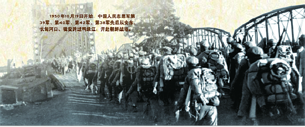 從1950年10月19日開始,中國(guó)人民志愿軍第39軍、40軍、42軍、38軍先后從安東(今丹東)、長(zhǎng)甸河口、輯安(今集安)跨過鴨綠江,開赴朝鮮戰(zhàn)場(chǎng)。