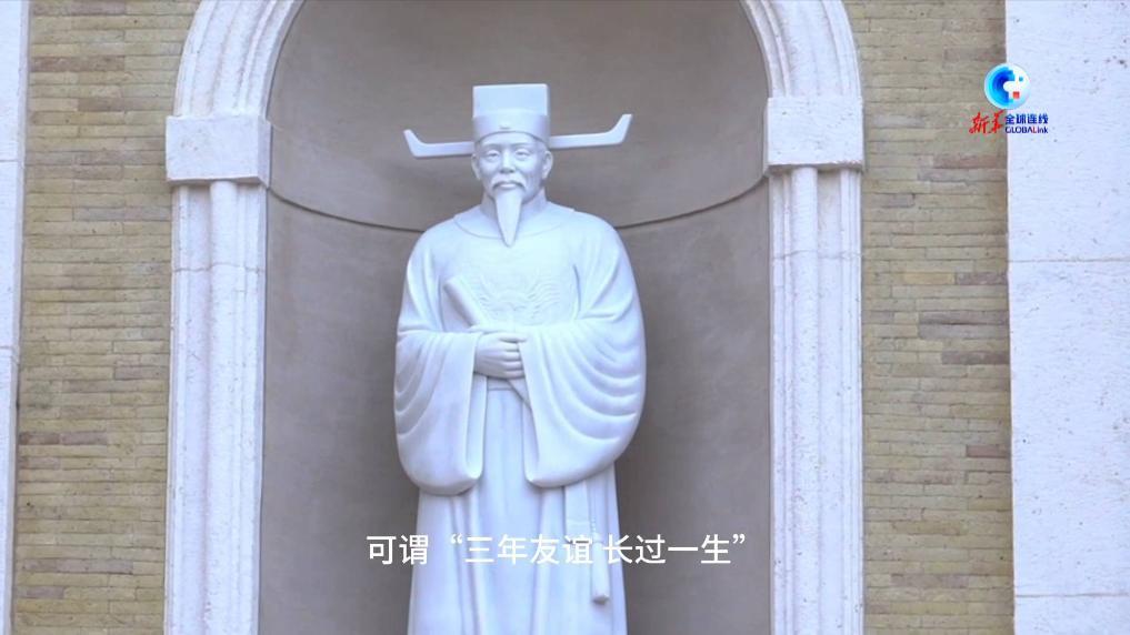 四百多年后的今天,利瑪竇雕像就居于馬切拉塔的市中心,深受當(dāng)?shù)厝俗纺骄囱?。而在他的身邊,還赫然屹立著一尊頭戴烏紗帽、身著長袍的中國古人雕像。他是誰?為什么會在這里?請跟隨新華社記者彭卓的腳步,前往利瑪竇的故鄉(xiāng)一探究竟。