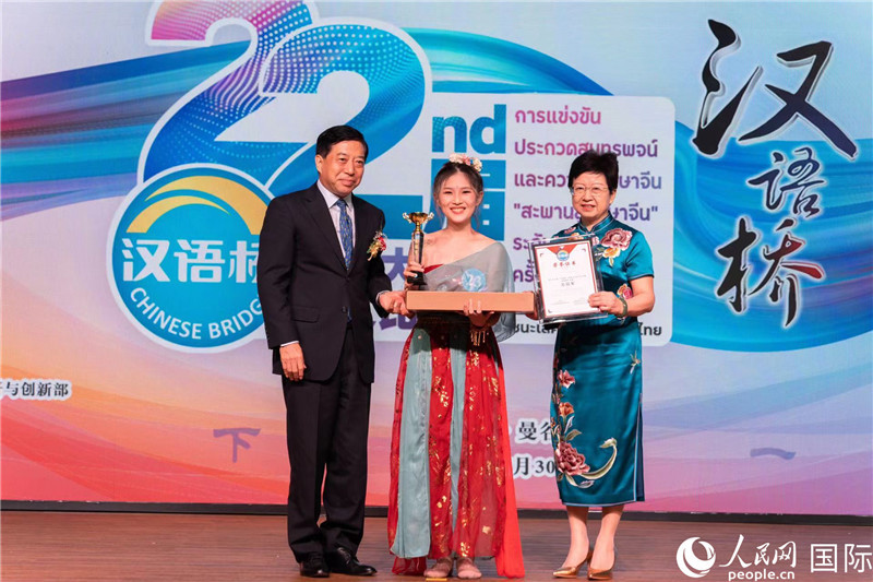 經(jīng)過激烈比拼,來自清萊皇太后大學(xué)的張益榮脫穎而出,獲得泰國(guó)賽區(qū)大學(xué)生中文比賽的總冠軍,將代表泰國(guó)到中國(guó)參加全球總決賽。拉卡邦先皇理工大學(xué)蕭鴻麟獲得一等獎(jiǎng),將赴華觀摩全球總決賽。