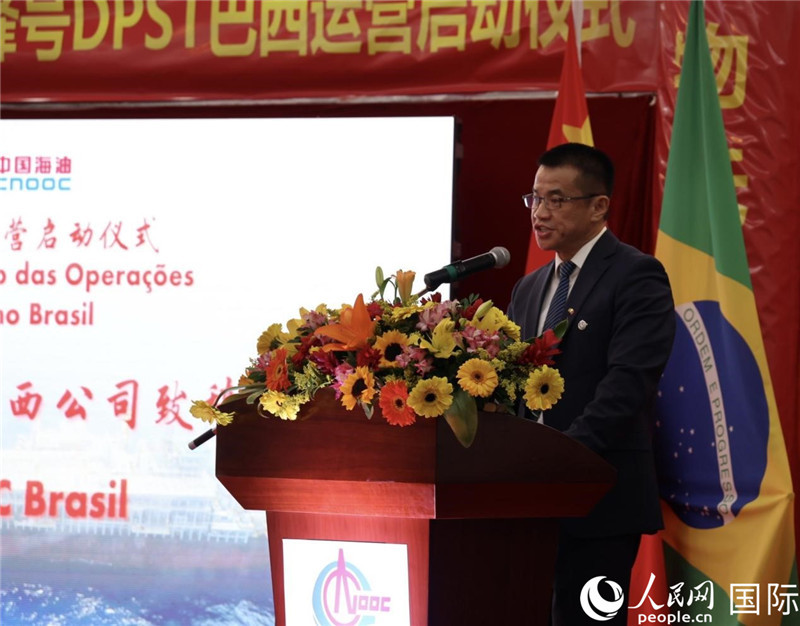 中海油巴西公司總經(jīng)理黃業(yè)華致辭。人民網(wǎng)記者 宋亦然攝