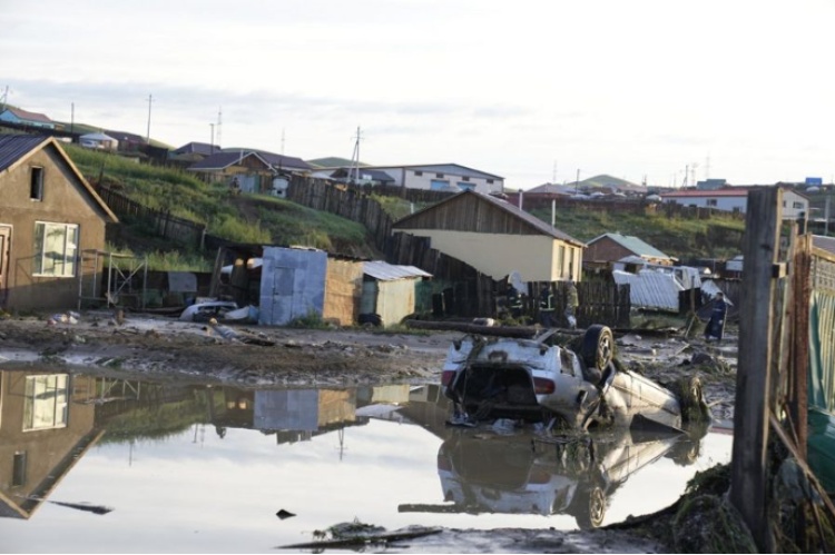 8月6日烏蘭巴托市巴彥朱日赫區(qū)一受災(zāi)地。蒙通社