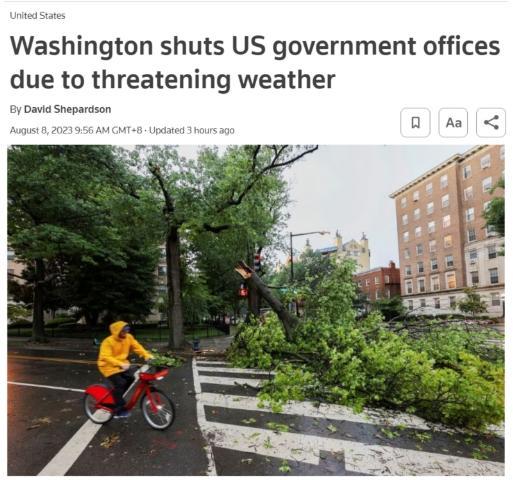 中新網(wǎng)8月8日電 據(jù)路透社報(bào)道,當(dāng)?shù)貢r(shí)間7日,美國(guó)華盛頓地區(qū)出現(xiàn)雷暴天氣,當(dāng)?shù)卣k公機(jī)關(guān)提早關(guān)閉。美東地區(qū)的居民還接到警告稱,可能出現(xiàn)龍卷風(fēng)、破壞性強(qiáng)風(fēng)和冰雹。