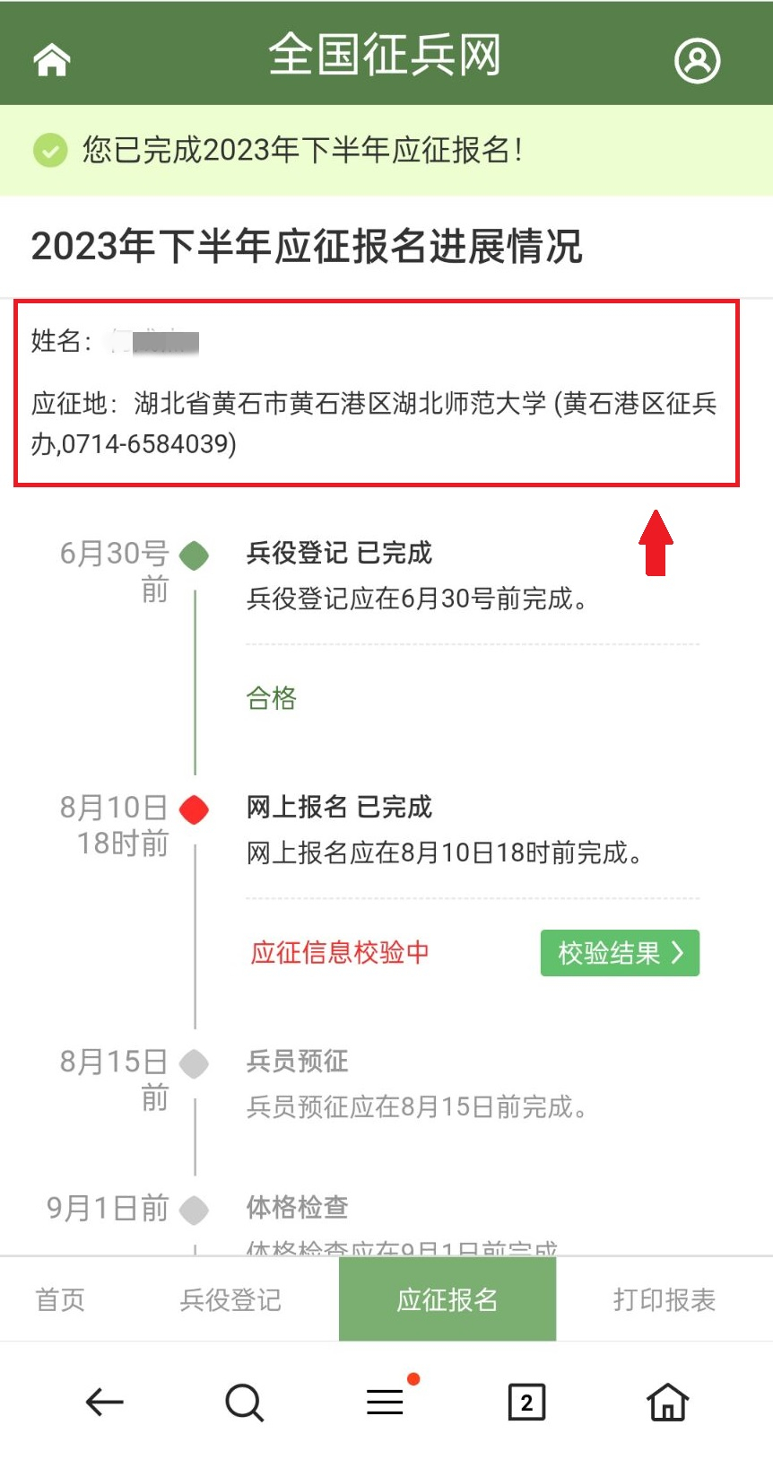 全國(guó)征兵網(wǎng)是應(yīng)征報(bào)名唯一官方網(wǎng)站,應(yīng)征青年完成報(bào)名之后,系統(tǒng)會(huì)自動(dòng)顯示應(yīng)征地和所屬征兵辦的咨詢(xún)電話(huà),有任何疑問(wèn)都可以撥打咨詢(xún)。應(yīng)征地征兵辦也會(huì)主動(dòng)聯(lián)系溝通相關(guān)事宜,不要輕信來(lái)路不明的工作人員,提高警惕!