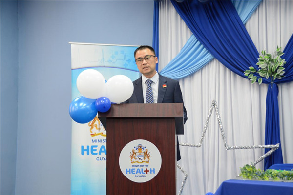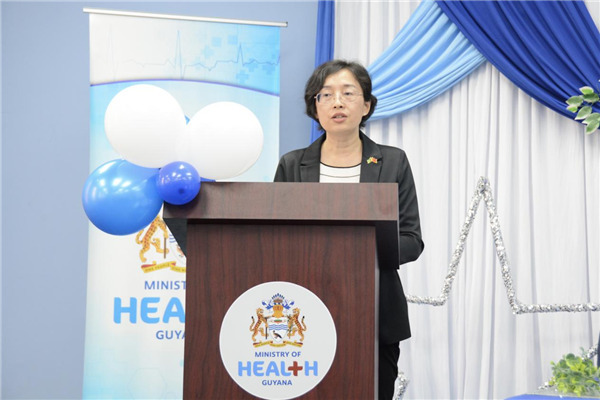 中國駐圭亞那大使郭海燕致辭。第18期中國援圭亞那醫(yī)療隊供圖