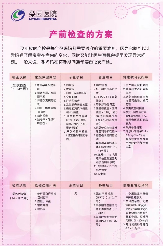 十月懷胎,一朝分娩。為了保證孩子的健康,孕媽媽們?cè)衅谝鱿嚓P(guān)檢查,包括產(chǎn)前檢查、產(chǎn)前篩查,必要時(shí)還涉及到上述產(chǎn)前診斷。梨園醫(yī)院孕婦學(xué)校定期開班,可以為您準(zhǔn)備了豐富的孕期保健和育兒課程,歡迎和期待您的參加!