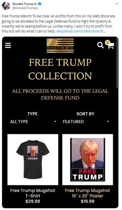 據(jù)報(bào)道,當(dāng)天,小特朗普在社交媒體上寫道,“很明顯,我的網(wǎng)店銷售這些產(chǎn)品的所有利潤(rùn)都將捐給法律辯護(hù)基金,以對(duì)抗我們眼前的暴政和瘋狂。與許多人不同,我不會(huì)試圖從中獲利,而是會(huì)盡我所能提供幫助?!?/p>