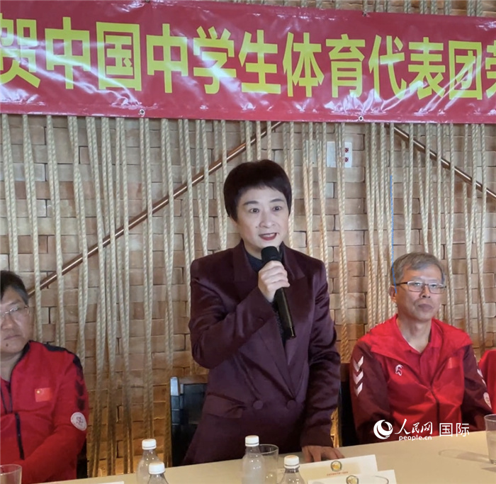 田敏在致辭中首先代表駐里約總領(lǐng)館向代表團(tuán)在里約期間取得的各方面成果表示衷心祝賀,并向里約僑胞在比賽期間的熱情付出表示感謝。她表示,青年興則國家興,青年強(qiáng)則國家強(qiáng),中國中學(xué)生體育代表團(tuán)的運(yùn)動員們賽場上爭金奪銀、為國爭光,賽場外廣交朋友、播撒友誼,運(yùn)動員們的優(yōu)異表現(xiàn)和卓越風(fēng)采充分展現(xiàn)了民族的未來和希望。田敏最后寄語運(yùn)動員們不負(fù)青春、不負(fù)韶華,努力學(xué)習(xí)、刻苦訓(xùn)練,早日成為堪當(dāng)民族復(fù)興重任的國之棟梁。