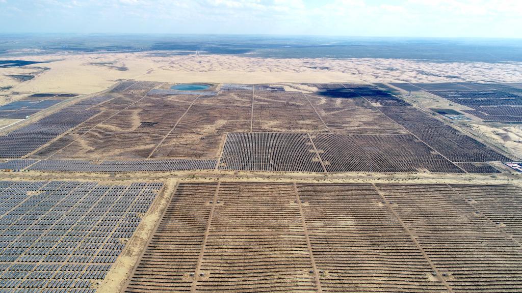 這是8月24日拍攝的鄂爾多斯市達拉特光伏基地(無人機照片)。新華社記者 賀書琛 攝