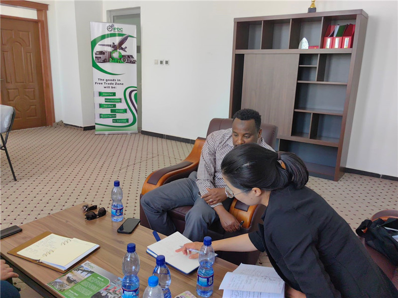萬(wàn)巧云陪企業(yè)拜訪埃塞俄比亞德雷達(dá)瓦自貿(mào)區(qū)負(fù)責(zé)人。受訪者供圖
