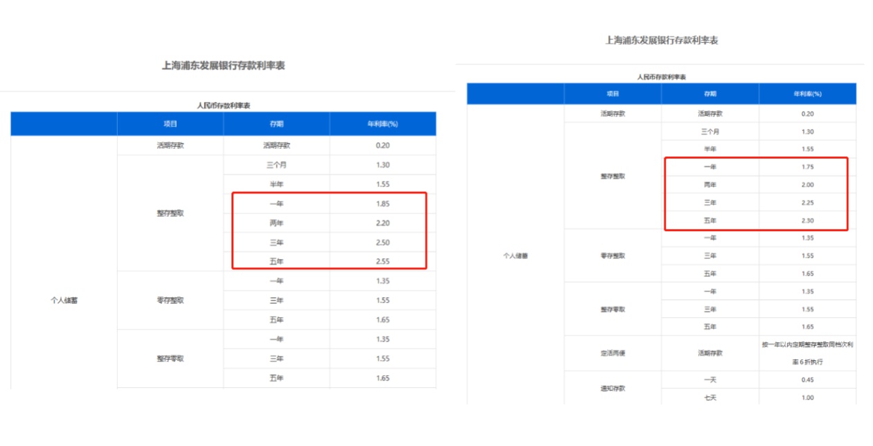 此外,浦發(fā)銀行、華夏銀行、光大銀行、渤海銀行整存整取1年期利率從1.85%下調至1.75%,2年期利率從2.2%下調至2%,3年期、5年期利率從2.5%、2.55%下調至2.25%、2.3%。