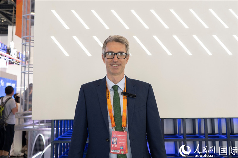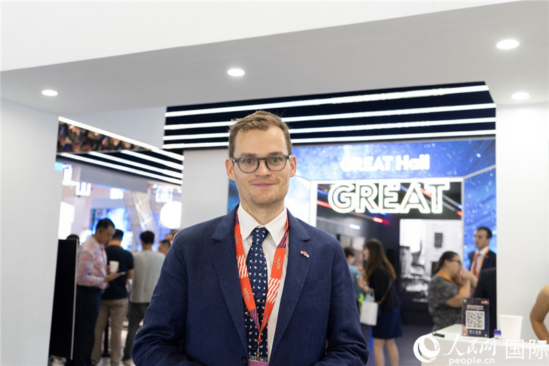 英國駐華貿(mào)易使節(jié)杜濤在2023年中國國際服務(wù)貿(mào)易交易會現(xiàn)場。人民網(wǎng) 常沙攝