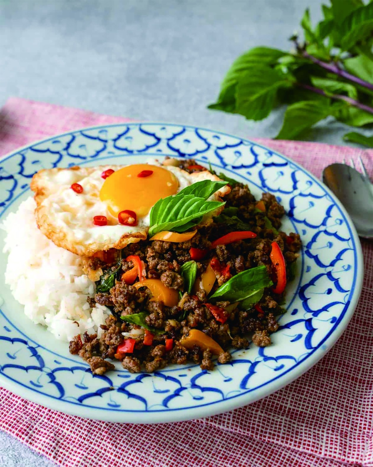 當(dāng)?shù)厝苏J(rèn)為打拋飯是泰國菜口味平衡的完美典范——一道菜里可以囊括他們喜愛的甜、咸、辣。因為可以與米飯簡單搭配成菜,打拋飯很快就進入了泰國家庭食譜中。