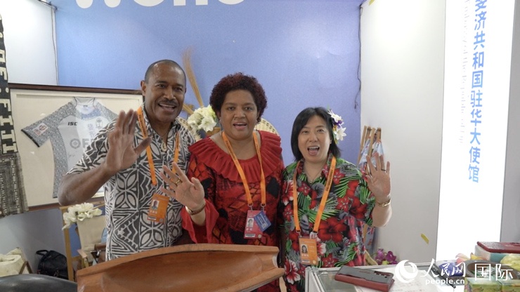 斐濟(jì)共和國駐華大使館二等秘書阿美莉婭·叢波娜(左二)。人民網(wǎng) 王禹蘅攝