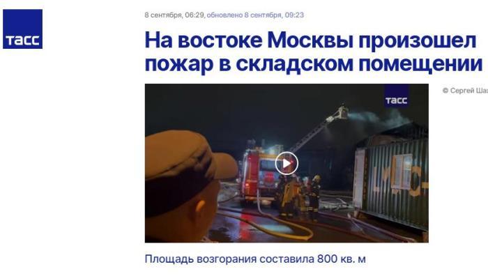 據(jù)報(bào)道,當(dāng)日莫斯科庫斯科夫斯卡婭街上的一處倉庫發(fā)生火災(zāi),過火面積800平方米。莫斯科緊急情況部總局新聞處表示,共有29臺(tái)設(shè)備、90余人參與滅火。