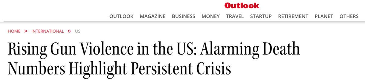 中國日報網(wǎng)9月14日電 印度知名新聞雜志《瞭望》(Outlook India)網(wǎng)站近日刊文稱,2022年,美國槍支暴力造成的死亡人數(shù)高達48117人。多到驚人的涉槍死亡人數(shù)突顯出,槍支暴力這一問題在美國造成的持久性危機。在美國,涉槍死亡率甚至是溺水死亡率的5倍多。