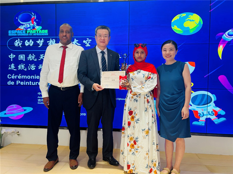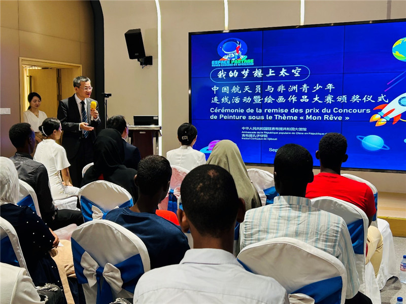 人民網(wǎng)迪拜9月14日電 (記者張志文)吉布提市消息:當(dāng)?shù)貢r(shí)間9月13日,吉布提“我的夢(mèng)想上太空”中國(guó)航天員與非洲青少年連線活動(dòng)暨繪畫(huà)作品大賽頒獎(jiǎng)儀式舉行。繪畫(huà)比賽獲獎(jiǎng)選手與吉布提孔子學(xué)院學(xué)生代表觀看了活動(dòng)直播,并欣賞了“天和”獎(jiǎng)獲獎(jiǎng)作品在天宮空間站的展示視頻。中國(guó)駐吉布提大使館政務(wù)參贊沈沙、吉布提工商學(xué)校校長(zhǎng)阿卜迪、吉布提孔院中方院長(zhǎng)鄒燕舞等出席。
