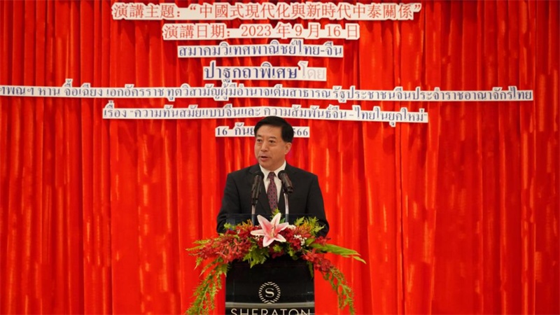 韓志強(qiáng)大使發(fā)表“中國式現(xiàn)代化與新時代中泰關(guān)系”演講。泰華進(jìn)出口商會供圖