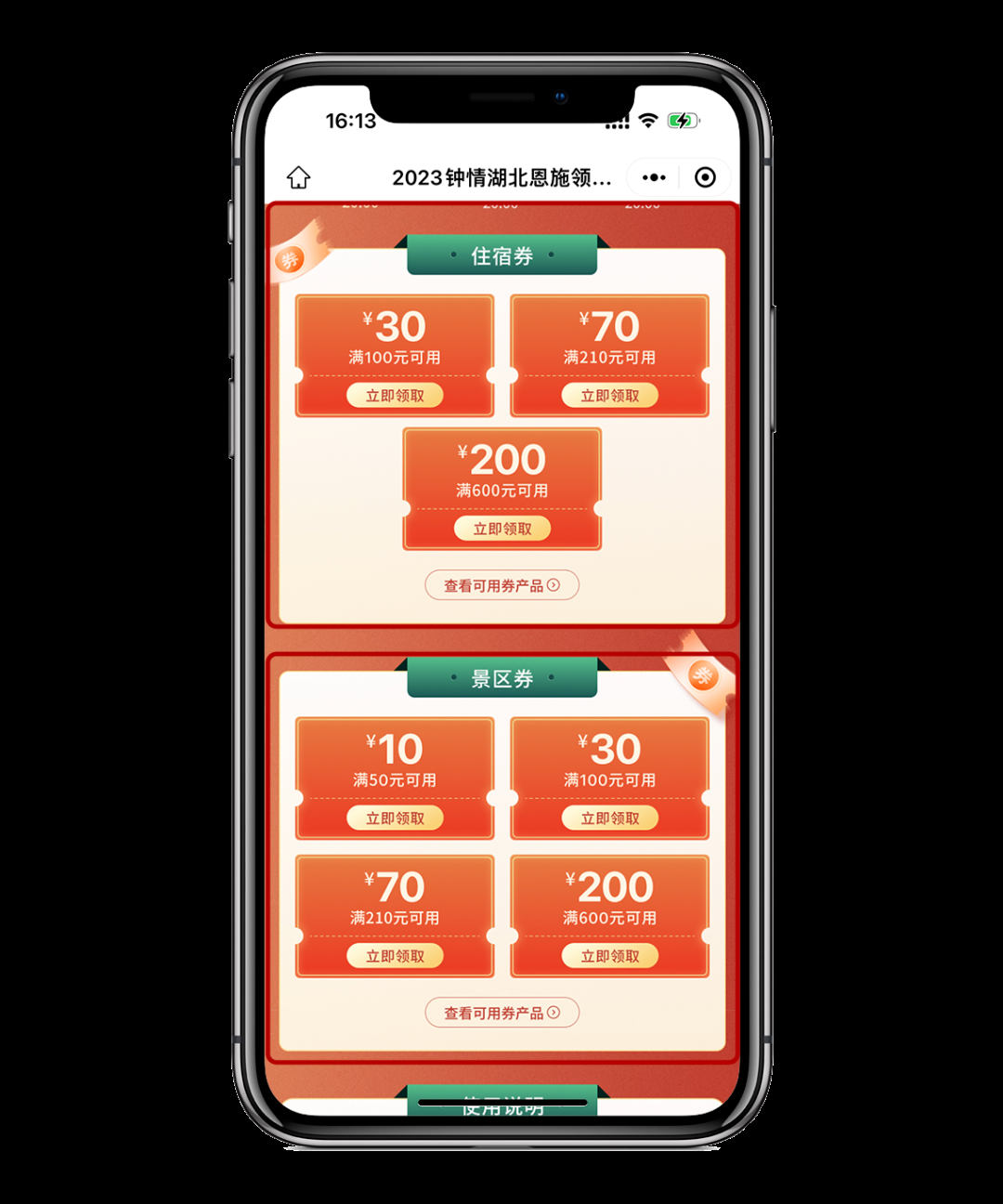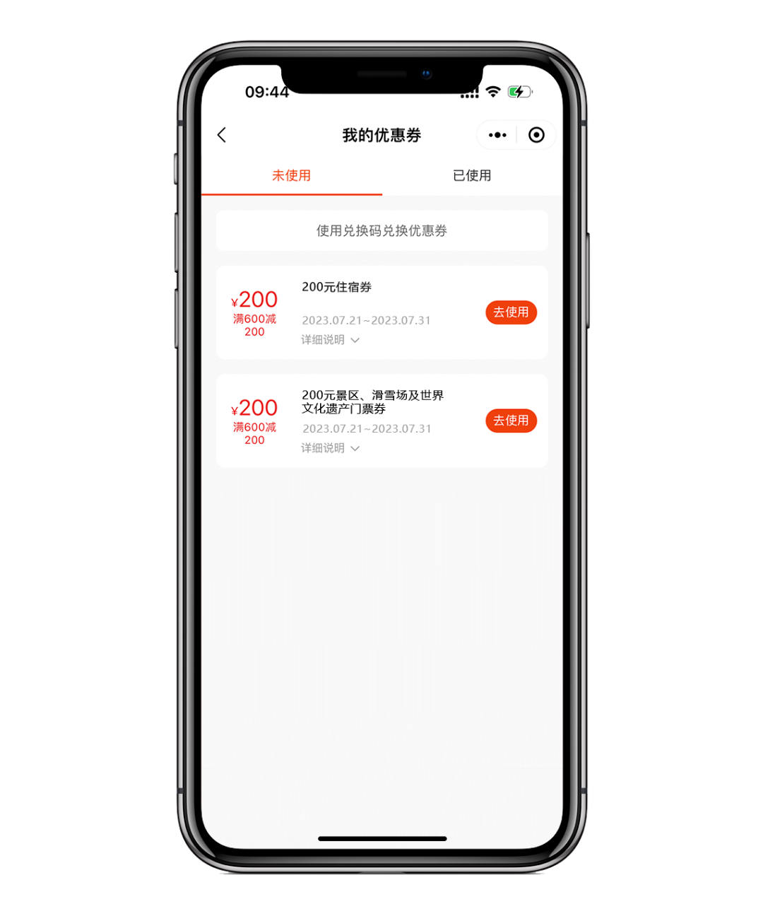 2、景區(qū)、滑雪場及世界文化遺產(chǎn)門票券:包括滿50元減10元、滿100元減30元、滿210元減70元、滿600元減200元四種。