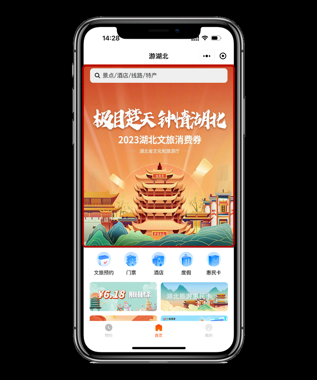 第一步:打開“游湖北”APP/小程序——點擊進(jìn)入“極目楚天 鐘情湖北”文旅消費券活動