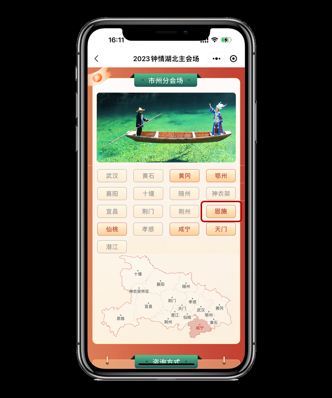 第二步:在活動頁面選擇【出游城市】,點擊“恩施”進(jìn)入領(lǐng)券專區(qū)