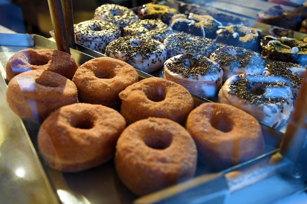 這是2019年9月12日在美國紐約一家甜甜圈店拍攝的各種口味的甜甜圈。新華社記者李睿攝