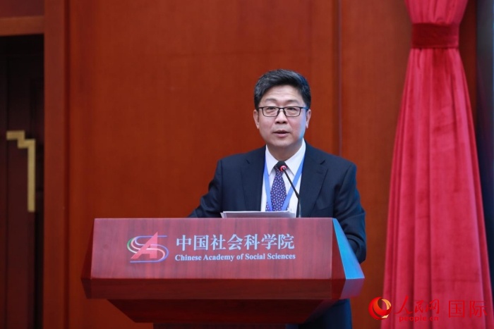 | 中國(guó)社會(huì)科學(xué)院副院長(zhǎng)王昌林發(fā)表視頻致辭。人民網(wǎng)記者 陳建軍攝 |