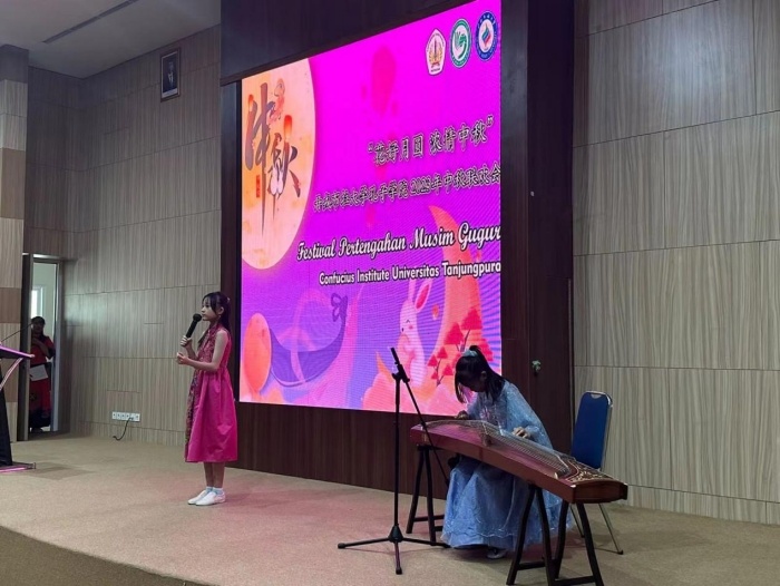 周桂在致辭中說,此次中秋節(jié)主題語言文化交流系列活動,不僅為孔院學(xué)員體驗(yàn)感知中國中秋節(jié)的文化內(nèi)涵提供了機(jī)會,而且為學(xué)員通過交流提高中文水平提供了舞臺,參加此次活動的領(lǐng)導(dǎo)嘉賓與師生們在美好溫馨的節(jié)日氛圍里共度中秋,共同譜寫中印尼友誼的美好故事。