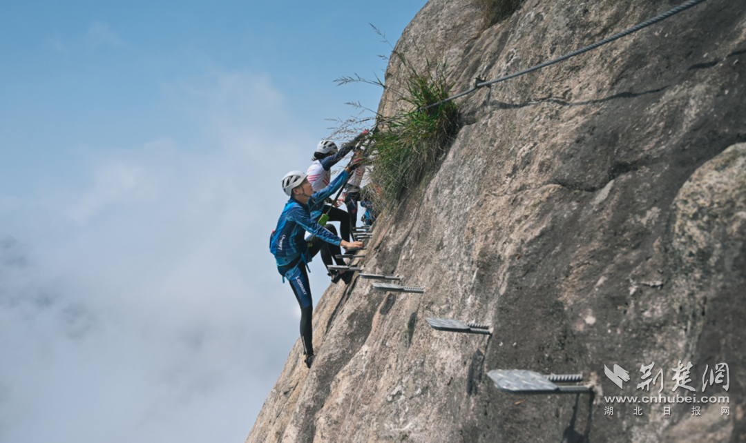 在懸崖峭壁間攀登游走的刀峰龜拉達(dá)。巧妙地將攀巖和徒步兩項(xiàng)運(yùn)動(dòng)結(jié)合,讓不會(huì)攀巖的人也能在陡峭的巖壁上“飛檐走壁”。