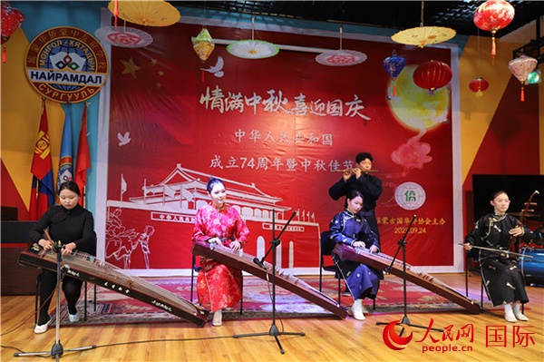 | 9月24日,旅蒙華僑蒙中友誼學(xué)校學(xué)生表演民樂(lè)合奏《十五的月亮》。人民網(wǎng)記者 霍文攝 |