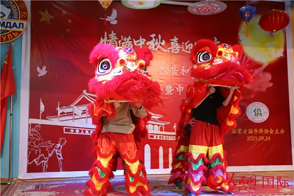 | 9月24日,旅蒙華僑蒙中友誼學(xué)校學(xué)生表演舞獅。人民網(wǎng)記者 霍文攝 |