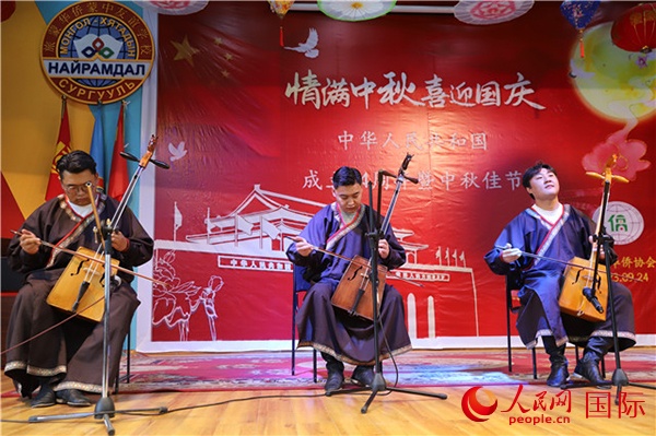 | 9月24日,旅蒙華僑蒙中友誼學(xué)校學(xué)生表演馬頭琴合奏《今天是你的生日》。人民網(wǎng)記者 霍文攝 |
