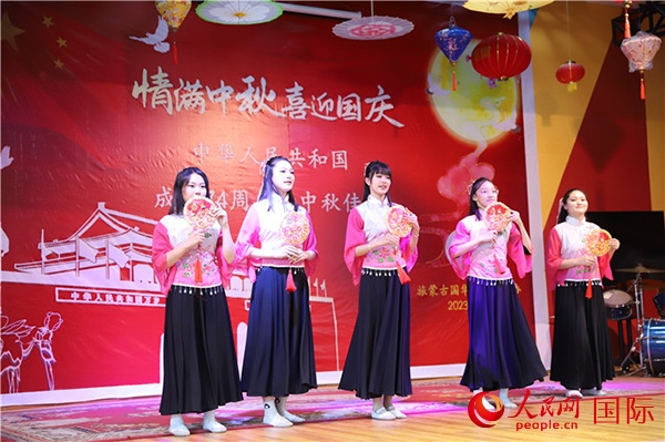 | 9月24日,旅蒙華僑蒙中友誼學(xué)校學(xué)生表演舞蹈《回眸》。人民網(wǎng)記者 霍文攝 |