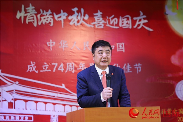 | 9月24日,旅蒙華僑協(xié)會(huì)會(huì)長(zhǎng)白雙戰(zhàn)致辭。人民網(wǎng)記者 霍文攝 |