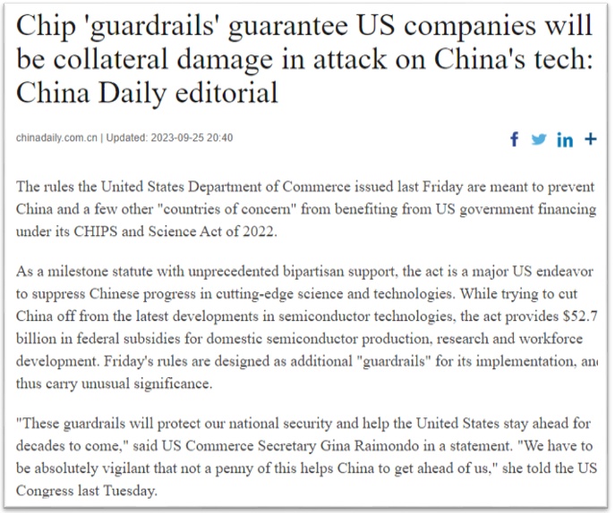原標(biāo)題:Chip 'guardrails' guarantee US companies will be collateral damage in attack on China's tech