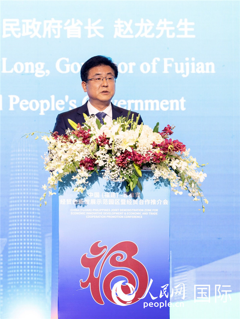 人民網(wǎng)馬尼拉9月26日電 (記者樊帆)9月25日,中國(guó)(福建)—菲律賓經(jīng)貿(mào)創(chuàng)新發(fā)展示范園區(qū)暨經(jīng)貿(mào)合作推介會(huì)在馬尼拉成功舉辦。福建省長(zhǎng)趙龍出席并作主旨演講,中國(guó)駐菲律賓大使黃溪連、菲律賓貿(mào)工部長(zhǎng)帕斯夸爾、菲華商聯(lián)總會(huì)理事長(zhǎng)施東方出席并致辭,八打雁省省長(zhǎng)曼德納斯、菲總統(tǒng)對(duì)華貿(mào)易、投資和旅游特使梅納德、許智鈞,菲總統(tǒng)投資和經(jīng)濟(jì)事務(wù)顧問弗雷德里克·吳、菲貿(mào)工部副部長(zhǎng)魯?shù)婪?、菲外交部副部長(zhǎng)多明戈、巴丹省眾議員阿爾伯特·加西亞、瑪利亞·加西亞、巴丹自由港區(qū)管理署署長(zhǎng)潘加達(dá)曼、巴丹自由港區(qū)管理署主席甘凱科,菲華各界聯(lián)合會(huì)主席蔡永寧、菲律賓中國(guó)商會(huì)會(huì)長(zhǎng)侯世練、菲中了解協(xié)會(huì)主席蘭比諾、菲律賓中華總商會(huì)理事長(zhǎng)李賢冊(cè)、中資企業(yè)(菲律賓)協(xié)會(huì)會(huì)長(zhǎng)胡新泉,福建省代表團(tuán)、菲政商界、在菲中資企業(yè)、媒體等共600余人參加。