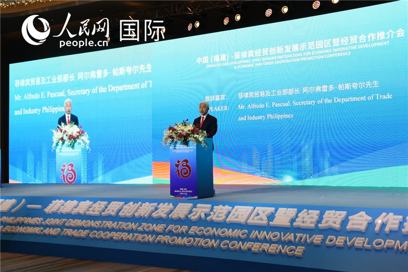 | 菲律賓貿(mào)工部長(zhǎng)帕斯夸爾出席并致辭。人民網(wǎng)記者 樊帆攝 |