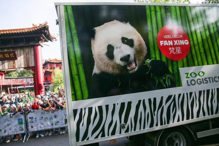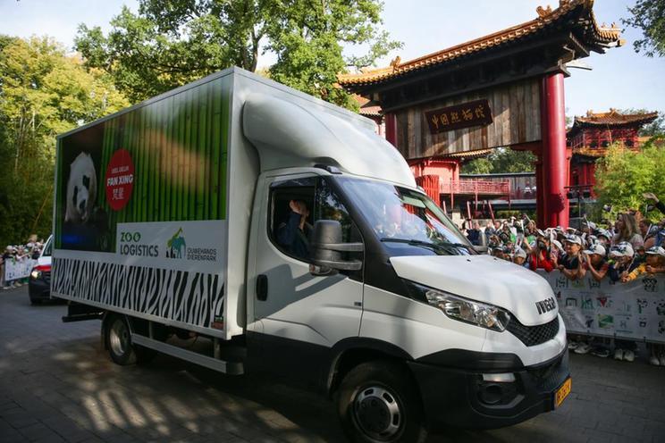 9月27日,裝著大熊貓“梵星”的汽車啟程離開荷蘭雷嫩的歐維漢茲動物園。新華社記者鄭煥松攝