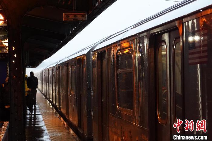 當?shù)貢r間9月29日,美國紐約市因極端降雨天氣進入緊急狀態(tài)。圖為紐約市一列地鐵在雨中延誤到站?!≈行律缬浾?王帆 攝