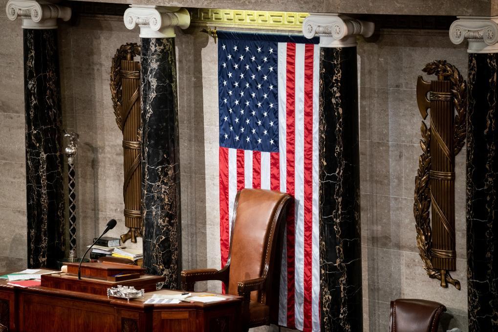 這是1月5日在美國華盛頓國會拍攝的空置的眾議院議長座椅。新華社記者劉杰攝