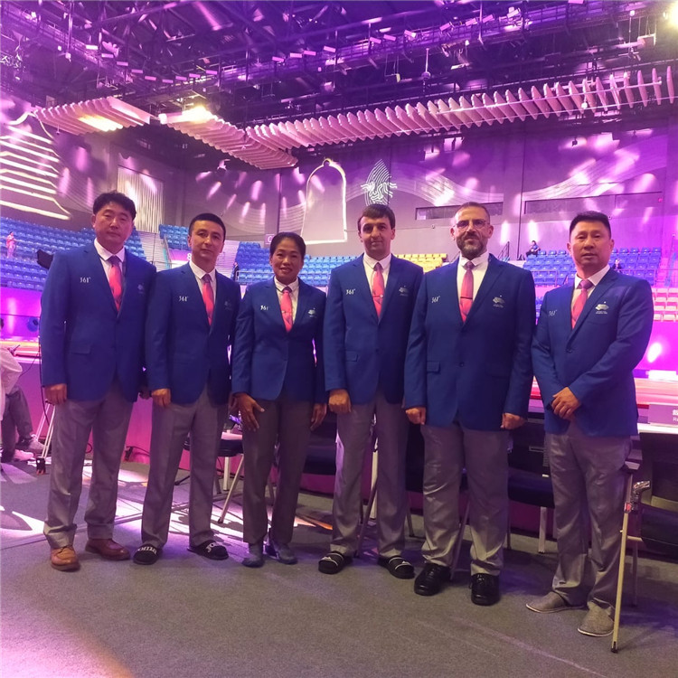 詹多斯·基亞諾夫與各國裁判員合影(左二)。受訪者供圖