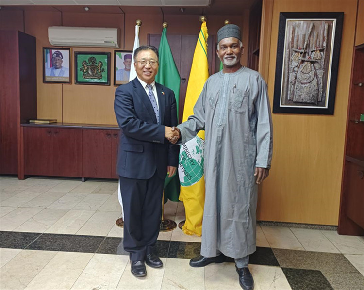 | 駐尼日利亞大使崔建春(左)會見尼外長圖加爾。駐尼使館供圖 |
