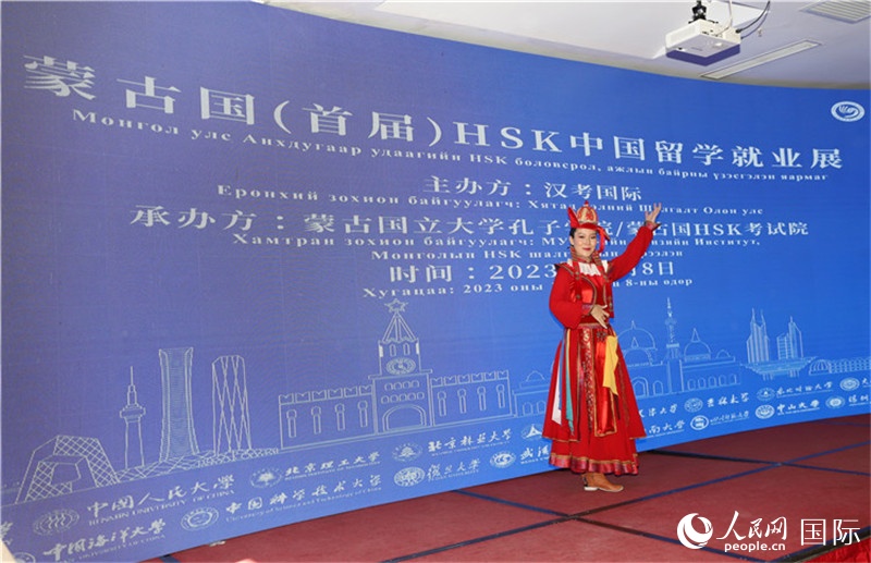 人民網(wǎng)烏蘭巴托10月8日電 (記者霍文)8日,由中國(guó)教育部中外語言交流合作中心、漢考國(guó)際主辦,蒙古國(guó)立大學(xué)孔子學(xué)院/蒙古國(guó)HSK考試院承辦的蒙古國(guó)首屆HSK中國(guó)留學(xué)就業(yè)展在烏蘭巴托成功舉辦。來自北京大學(xué)、清華大學(xué)、復(fù)旦大學(xué)、中國(guó)科學(xué)技術(shù)大學(xué)等21所中國(guó)“雙一流”高校和HSK MOCK,以及華為技術(shù)(蒙古)有限責(zé)任公司、東勝石油(蒙古)有限公司、中國(guó)能建-葛洲壩蒙古有限公司、順豐蒙古分公司等15家大型中資企業(yè)前來參展。