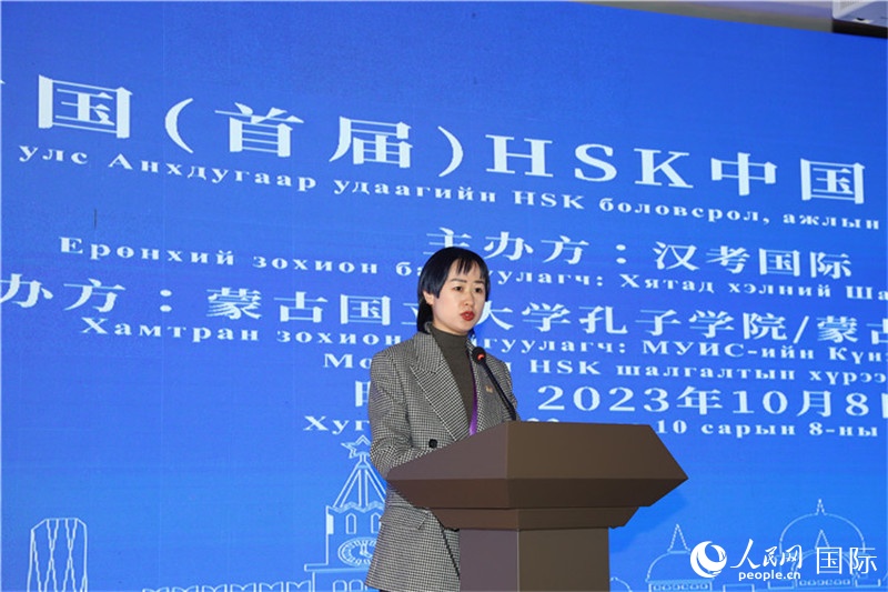 | 10月8日,漢考國(guó)際副總經(jīng)理黃蕾致辭。人民網(wǎng)記者 霍文攝 |